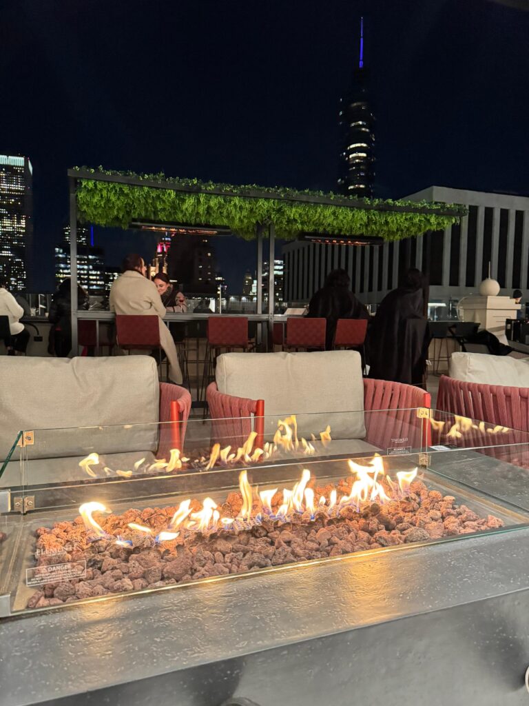 Agora, se tem um detalhe que realmente vai fazer você se apaixonar por este hotel, é o The Rooftop, o bar localizado no 27º andar do RIU Plaza Chicago. Eu fiquei impressionada com a vista panorâmica da cidade: Chicago parece ainda mais impressionante quando vista de cima, especialmente com a linha do horizonte ao fundo. E tem mais: o bar conta com um balcão de vidro a 88 metros de altura – uma experiência que dá aquele friozinho na barriga, mas que é simplesmente imperdível.