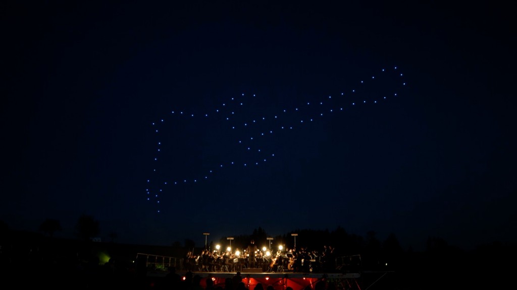 Os drones serão controlados por quatro pilotos e formarão imagens inspiradas no maior evento de música como arcos equalizadores, ondas de som, guitarras e a marca do Rock in Rio, entre outros. Os equipamentos voarão por um diâmetro de aproximadamente 200 metros e poderão ser vistos de praticamente todos os pontos da nova Cidade do Rock. A dança de luz e cor, que formará desenhos exclusivos e que têm tudo a ver com o festival, terá uma trilha sonora com um arranjo especial inspirado na música clássica austríaca, passando pela bossa nova brasileira e sendo arrematada pela tradicional música-tema “Se a vida começasse agora”, marca registrada do Rock in Rio.