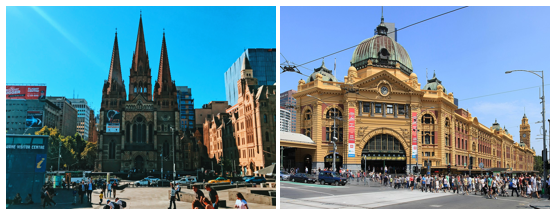 Começamos nosso roteiro de Melbourne justamente pelo coração da cidade. A Federation Square é a praça principal da cidade. Lá se encontra um enorme e super completo centro de informações turísticas. Na praça acontecem diversos eventos e nos arredores estão alguns dos principais prédios da cidade, como a agitadíssima Flinders Street Station, estação ferroviária inspirada pela Chhatrapati Shivaji Terminus, de Mumbai, que já foi a mais movimentada do mundo; e a St. Paul´s Cathedral, catedral anglicana e moradia do arcebispo de Melbourne. O local onde ela foi construída é exatamente onde aconteceu a primeira missão cristã em Melbourne, em 1835.