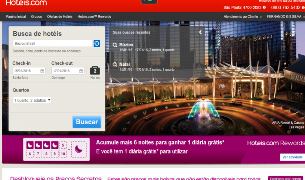 Planejando a próxima viagem? Então aproveite que somente hoje o site Hoteis.com está com uma promoção imperdível de desconto em hotéis pelo mundo. Para ter acesso aos chamados “preços secretos”, que não aparecem nos sites de busca é preciso seu usuário do aplicativo, associado do programa Hoteis.com Rewards ou assinar a newsletter do site.