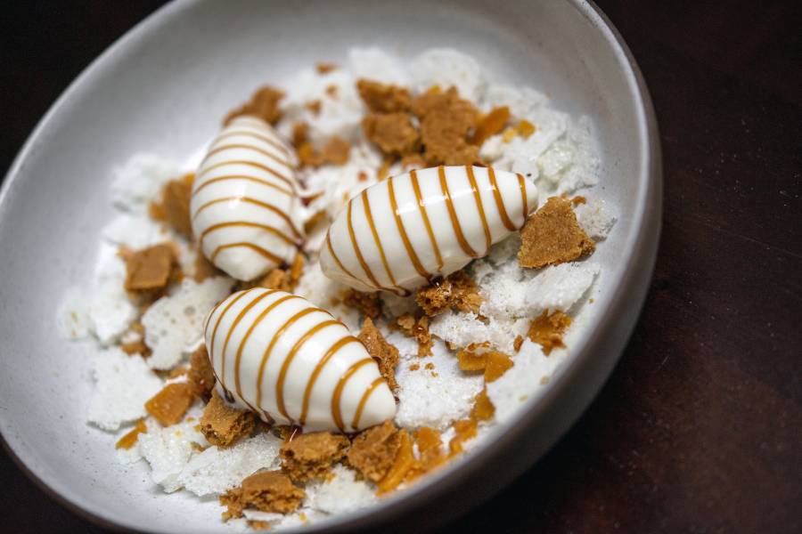 Husk-Merengue-CosmeUma das sobremesas mais famosas de Nova York é o Merengue do Cosme. Essa nuvem de merengue é recheada com puré de milho doce e mascarpone. O parto foi inspirado da Pasteleria La Gran Via, uma doceria de 75 anos da Cidade do México, casa do chef Cosme Enrique Olvera.