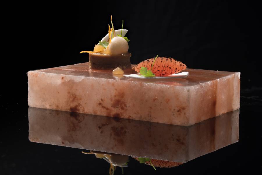 Miso-Cashew-Pink-Graprefuit-patisserie-chansonO nome é tão complexo quanto a sobremesa oferecida no primeiro voo solo do chef Rory Macdonald, que já foi chefe no grupo Hakkasan. O menu de sobremesas da Patisserie Chanson se destaca pela incorporação de produtos não tradicionais e salgados as receitas. Miso: Cashew: Pink Graprefuit é um ode do chef a cultura japonesa. Um biscoito de caju, com pudim de miso no topo é servido com sorvete de grapefruit. Já o bloco congelado de sal do Himalia é para dar um equilíbrio salgado a cada pedaço da sobremesa.