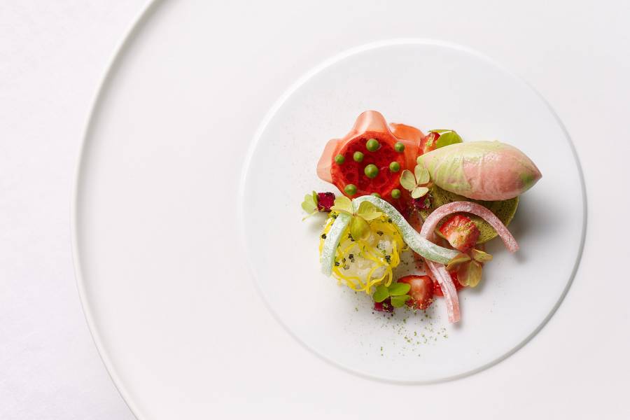 strawberry-tea-per-seO Per Se é uma confeitaria que mistura a pâtisserie clássica francesa com sabores e texturas japonesas. A chef Anna Bolz preparou uma sobremesa simples sobre os sabores de morango, matcha e vários chás gelados, para um sabor refrescante. No Strawberry Tea há rolo de chá verde, yuzu-matcha buttercream, arroz e calda de morango e matcha em sua composição.