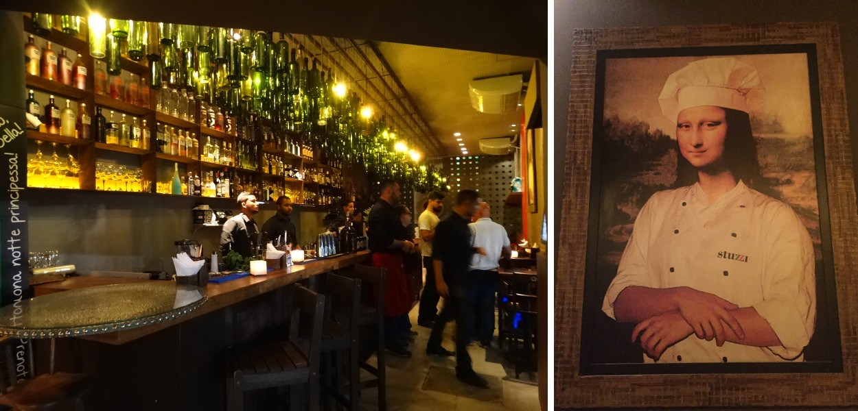 Aberto em 2011, o Stuzzi, como é conhecido pelos frequentadores, é um gastrobar com projeto da arquiteta Bel Lobo, onde garrafas são usadas como luminárias no salão. Uma agradável varanda com mesas de madeira e cadeiras estofadas é o espaço ideal para quem quer degustar as delícias da chef Paula Prandini e acompanhar o movimento da famosa Dias Ferreira. Quem preferir, o salão principal conta com sofás, mesas com madeira de demolição e um irreverente quadro da chef Monalisa, uma apologia à obra de Leonardo da Vinci, que dizem representar a própria chef. O ambiente é super agradável, com música em um volume ideal tanto para quem quer curtir o bar quanto para quem está jantando, com um playlist bem interessante.