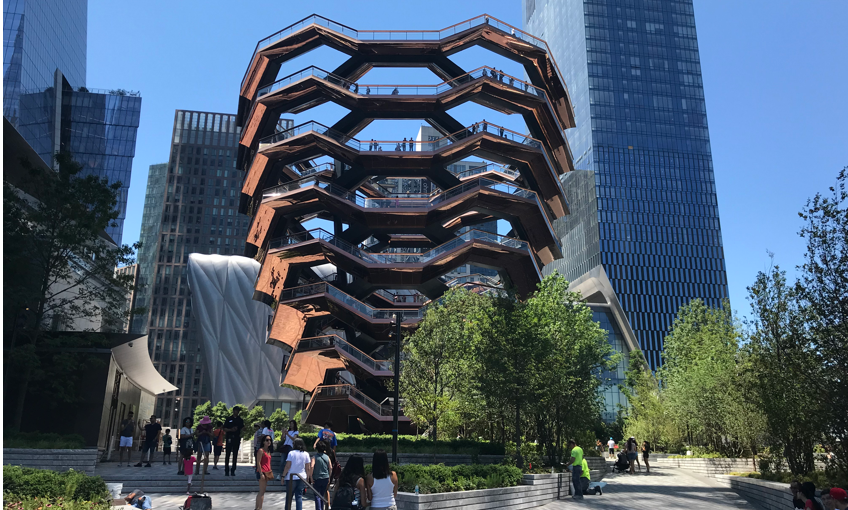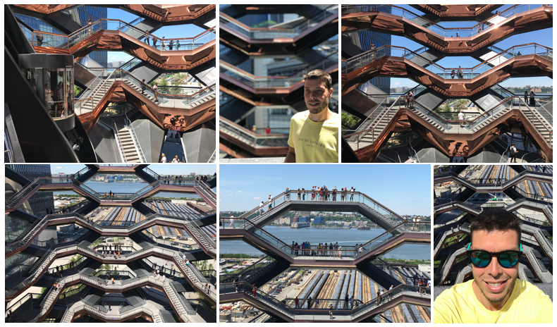 O chamado Hudson Yards está se somando a linha de trem suspensa que virou um parque, ao The Whitney Museum e ao Chelsea Market como um novo polo de atrações turísticas da cidade. O complexo, além do próprio The Vessel, tem um shopping de luxo com mais de 100 lojas e restaurantes que pode e deve ser conhecido também. Mas a grande atração é mesmo a enorme estrutura do The Vessel. E os números impressionam: Foram gastos certa de US$ 150 milhões de dólares na construção dos 154 lances de escada, 80 plataformas e quase 2.500 degraus. O The Vessel foi projetado na Inglaterra, construído na Itália e trasnportado de navio até Nova York.