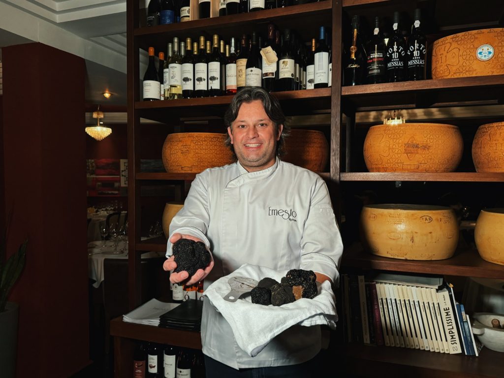 O chef acompanhou pessoalmente colheita de trufas negras na cidade italiana de Alba, e trouxe uma pequena quantidade para a cozinha do Ernesto Ristorante. Extremamente delicadas, as trufas devem ser consumidas logo após a colheita para que os preparos extraiam perfeitamente seu sabor e aroma únicos, o que as torna ainda mais especiais.