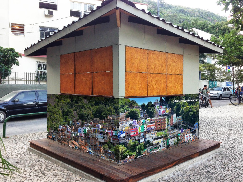 O estande, localizado na praça Corumbá, ao pé do morro, é assinado por Valmir Azevedo, arquiteto que nasceu e cresceu na comunidade. A ideia de criar o estande partiu dos próprios guias da comunidade, que além de se movimentarem para que a ideia saísse do papel, colocaram até a mão na massa. Para o secretário de Estado de Turismo, Nilo Sergio Felix, uma mostra do profissionalismo dos guias locais: “Um posto de informações garante ao visitante a segurança que ele precisa para consumir o produto turístico oferecido. Acompanhamos o grupo de guias do Santa Marta há anos. São fundamentais para a manutenção da região como um potencial ponto turístico da cidade, também conhecido pela estátua em homenagem ao cantor americano, Michael Jackson, parada certa de quem visita o morro”.