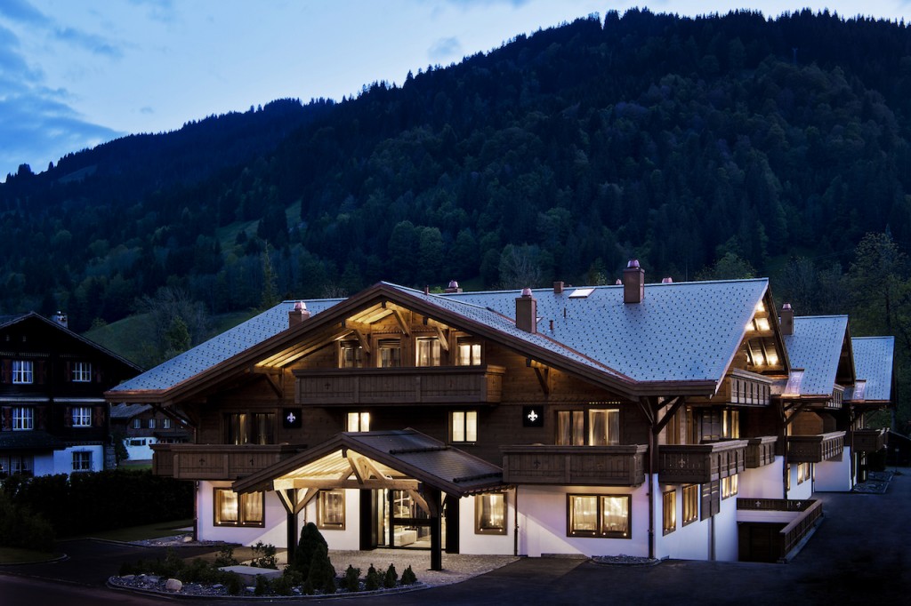 O hotel, localizado no coração de Gstaad, entre os pitorescos Alpes Berneses, na Suíça, é composto por três vastos chalés de madeira que misturam a arquitetura tradicional com linhas contemporâneas. A prioridade em descaracterizar completamente a atmosfera de um hotel tradicional é tamanha que tudo foi pensado minimamente para proporcionar essa sensação de estar em casa mesmo. A ideia é que o hóspede chegue a se questionar se está realmente num hotel ou num chalé privado. Ou ainda se é um convidado na casa de amigos ou está em sua casa de inverno.