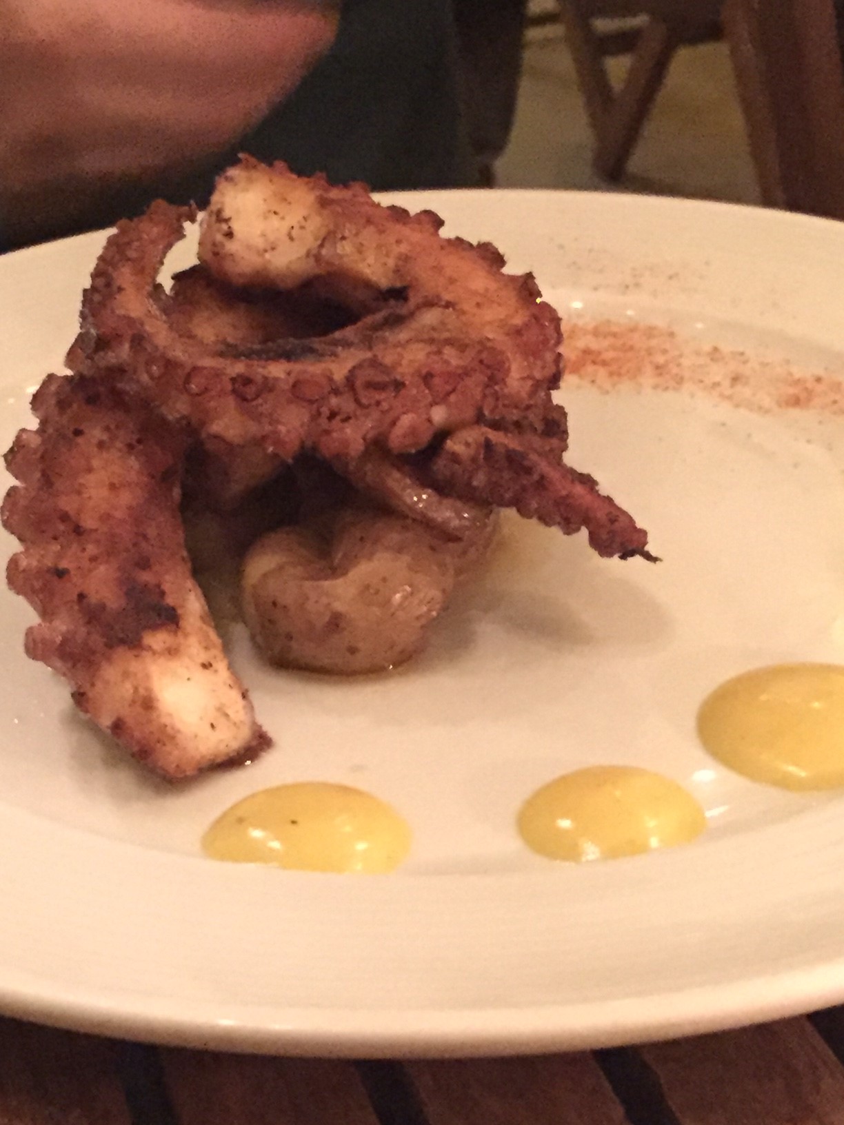 Na escolha dos pratos principais novamente fizemos boas escolhas: polvo na chapa acompanhado de batatas no sal grosso, aioli e páprica; saltimbocca de filé com presunto parma acompanhada de risoto de açafrão; bife Ancho angus acompanhado de molho bearnaise de estragão e batatas fritas; e um filé à Oswaldo Aranha da casa que é diferenciado – filé, risoto de alho assado, brócolis, aipim crocante e farofa de pão.