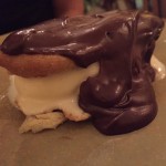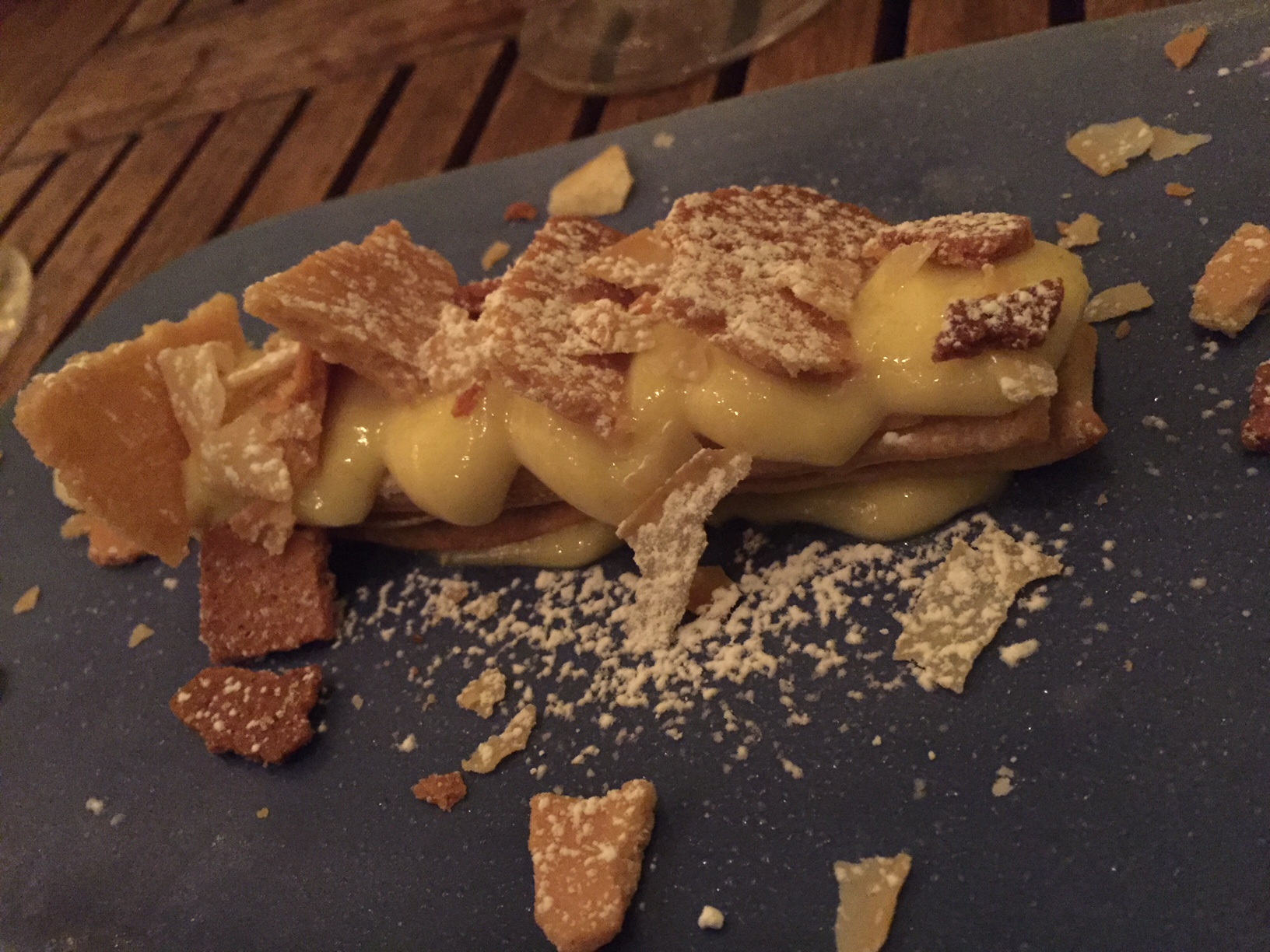 As porções de entrada e pratos principais são bem generosas, mas ainda faltava as sobremesas que estavam igualmente deliciosas. Optamos por: éclair de profiteroles com sorvete artesanal de baunilha e calda de chocolate belga 70%; mil folhas de baunilha de madagascar e massa crocante; e paçoca cremosa com gelato de chocolate, nata e crocante de bolo. Essa última então foi uma combinação perfeita.