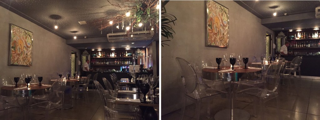 O restaurante fica na rua Aníbal de Mendonça, parte do famoso “quadrilátero dourado” do bairro, em um casarão da década de 70 dividido em dois ambientes: um interno com decoração de fotos e quadros de arte e outro externo no jardim coberto, onde estão vários escritórios de arte.