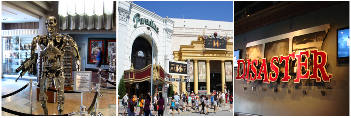 É hora de conhecer New York, a parte do parque que remete a mais famosa cidade americana. Entre prédios e ruas que lembram a Big Apple, a principal atração é o Revenge of The Mummy. Uma montanha russa interna que é imperdível! Sobrando tempo vá conhecer como são simulados os efeitos especiais no Twister… Ride it Out, e pode pular o Blue Brothers Show. Andando poucos passos você já estará em San Francisco onde o show de rock do Beetlejuice’s Graveyard Revue é dispensável. Mas vale ver como são feitas as simulações de grandes tragédias no Disaster (se tiver que optar entre esse e o Twister, certamente vale ficar com a última opção). Claro que Hollywood não poderia ficar de fora, e nessa parte do parque é possível viver um clássico com lembranças da Lucy – A Tribute (nada de mais), saber como são feitas as maquiagens de filmes de terror no Universal Orlando’s Horror Make-Up Show (também dispensável) e participar de uma parte do filme Terminator 2 em uma atração que mistura show ao vivo, efeitos especiais e filme em 3D (essa sim vale conhecer).