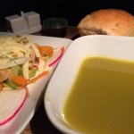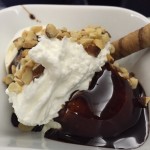 A refeição não ficou a desejar, mas nisso as companhias europeias costumam ser mais criativas. Além de uma grande e boa opção de bebidas, na ida o jantar teve como entrada um bolinho de batata envolto com salmão defumado, acompanhado de salada de rabanete, abóbora, damasco, amêndoas e parmesão e uma sopa de ervilhas que estava simplesmente deliciosa! Para o prato principal existiam 4 opções: Escolhi o filé grelhado com molho demi-glace acompanhado de polenta cremosa com queijo parmesão (a polenta estava deliciosa, mas a carne podia ser mais elaborada), mas ainda tinha coxa de frango refogada com alecrim e limão com batatas assadas e couve, penne a carbonara ou frango grelhado com chimichuri, rúcula e parmesão. Para sobremesa as opções eram sundae de baunilha, docinhos variados ou seleção de queijos. Confesso que achei essa a parte mais fraca, tanto que escolhi o sundae e um brigadeiro (que não eram nada elaborados).