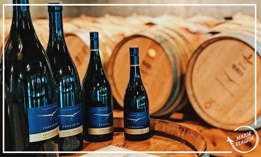 Uma característica bem legal sobre a Vinícola Peregrine é a cultura orgânica que usa o gado como uma forma de proteger a futura cultura da uva. Essa preocupação com a cultura orgânica mostra um pouco também o porque ainda tem uma característica menor, mesmo sendo reconhecida mundialmente pela qualidade dos seus vinhos. Ao todo são três vinícolas da marca na região de Central Otago, mas fomos conhecer a que é a mais famosa. A Vinícola Peregrine de Gibbston está a 400 metros acima do nível do mar, de frente para o Rio Kawarau. As condições do local são perfeitas para o cultivo das uvas Pinot Noir, Pinot Gris e Chardonnay.