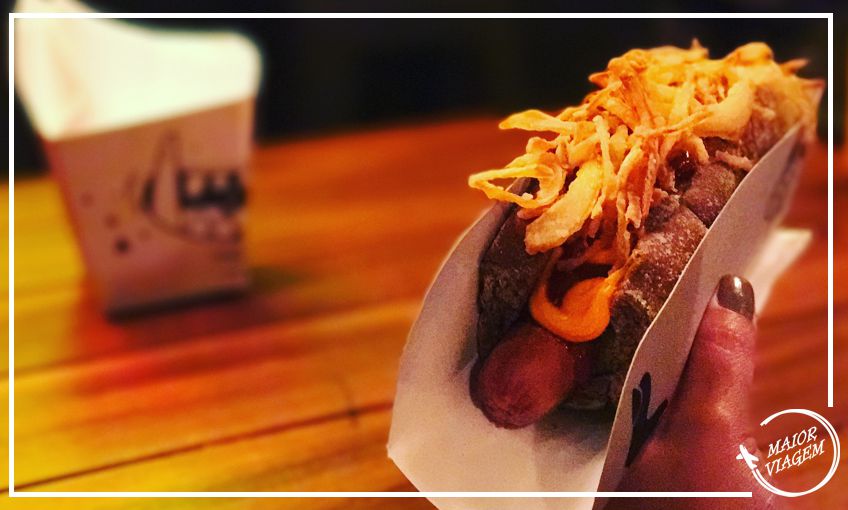 O menu apresenta cinco opções de cachorro-quente prontas, incluindo duas com salsicha vegana (produzida com aipim e soja), mas também é possível montar conforme seu gosto, escolhendo entre uma das três salsichas – viena, vegana e de cordeiro – e um dos 13 toppings. Outra novidade é que agora, além do pão que já era utilizado (que também é vegano), também existe a possibilidade do pão australiano. Mas ainda há espaço, e indico conhecer também, para as entradinhas. São três opções: As famosas fritas da casa, nachos ou o currywurst (tradicional receita alemã de salsichão de vitela que no Yolo ganha ketchup de bacon, curry e páprica e vêm acompanhado de fritas). Aliás, os toppings são um capítulo à parte, tanto pela variedade quanto pelo sabor. Destaco o saboroso molho gorgonzola, a deliciosa guacamole (uma das melhores que já provei), o ketchup monstro (um dos mais pedidos da casa) e a crocante cebola frita.